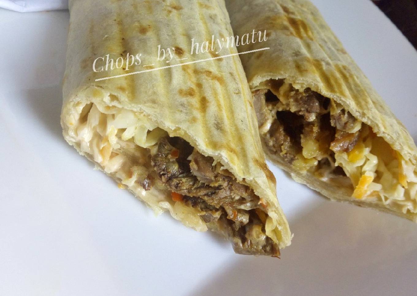 - Get the tortilla... spread the mayo mix on it.. arrange the grated carrots and cabbage.. then the beef.
