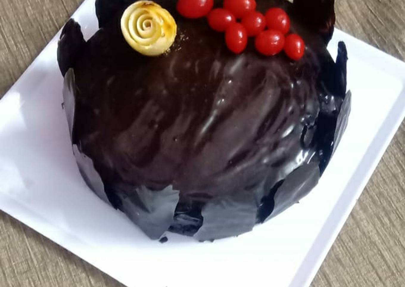 - Now decorate the cake with some chocolate decoratives and cherrys or according to your choice.