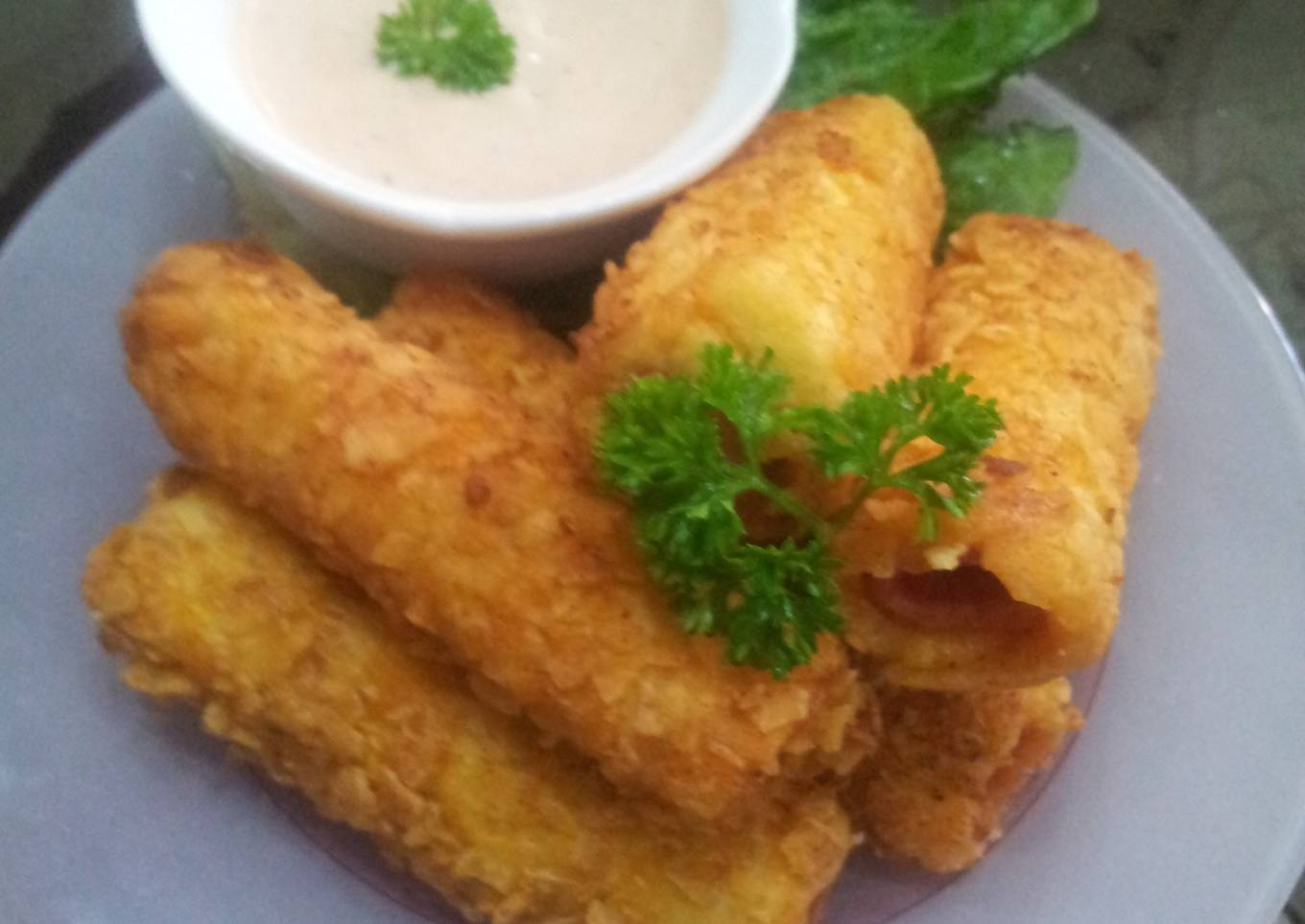 - Dip bread rolls in egg mixture and roll in crushed doritos chips, pat down crumbs to fully coat.